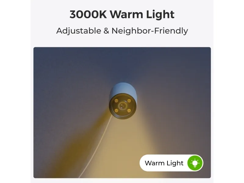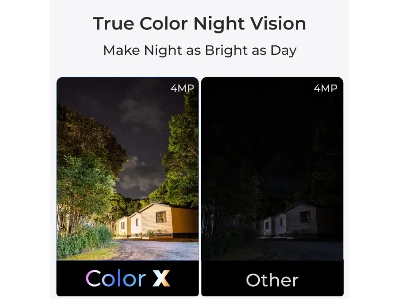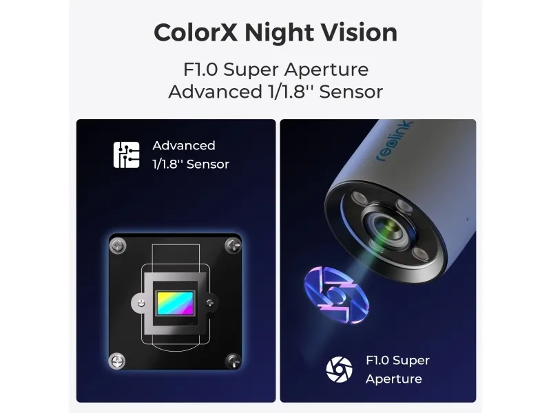 Immerse yourself into "bright as day" color night vision powered by our ColorX technology. Reolink ColorX Series P320X features F1.0 super aperture and advanced 1/1.8'' sensor, delivering nighttime footage with true-to-life colors in low light conditions. Adding a comforting glow to your surroundings, the 3000k warm light can also be turned on to enhance the night vision quality.