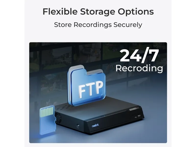 Enjoy the flexibility of multiple storage options with support for up to 256GB SD cards, NVR systems, and FTP servers to suit your specific needs and preferences.
