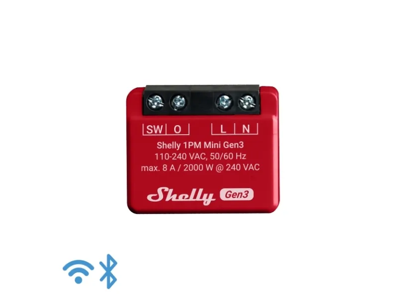 Shelly 1PM Mini Gen3 er utstyrt med trådløse tilkoblingsmuligheter, inkludert IEEE 802.11b/g/n og Bluetooth 4.2, og har en rekkevidde på opptil 30 meter innendørs og 50 meter i åpent terreng. Dette muliggjør sømløs integrering med smarthussystemer og fjernadgang. I tillegg er denne enheten kompatibel med populære intelligente assistenter som Google Assistant og Alexa, noe som forbedrer hjemmeautomatisering. MQTT-støtte muliggjør enkel kommunikasjon innenfor Internet of Things (IoT)-økosystemet, noe som gjør det mulig å utvide det smarte hjemmenettverket.