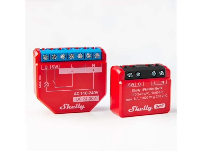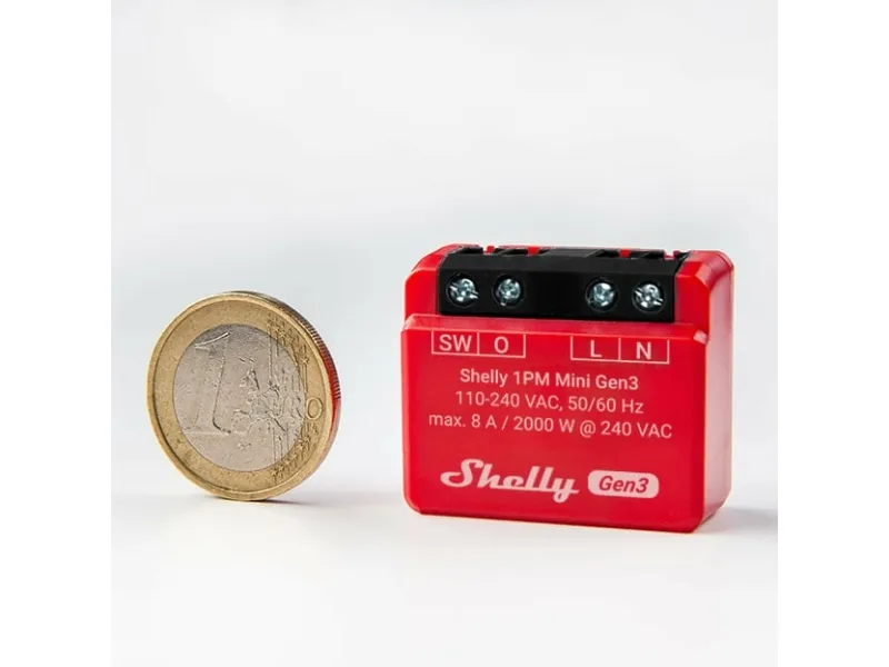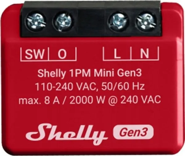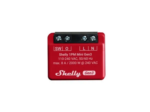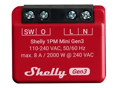Shelly 1PM Mini Gen3 - Relésvitsj - trådløs - 802.11b/g/n, Bluetooth 4.2 - 2.401 - 2.495 MHz - rød