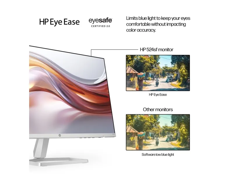 Ergonomically designed, it features tilt adjustments to ensure comfortable viewing over extended periods. The inclusion of HP Eye Ease and Low Blue Light technology minimizes eye strain without compromising color accuracy, making it ideal for long work sessions or late-night gaming marathons. Connectivity is seamless with HDMI and VGA inputs, providing flexibility to connect with various devices.