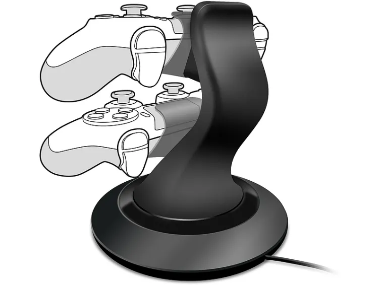 Charge your PS4 controllers quickly and reliably with the TWINDOCK charging system. Charge up to two controllers simultaneously and save the hassle of waiting. The proven, convenient docking system also holds your controllers securely in place – simply dock them and they'll start charging instantaneously. The rubberised feet prevent the charging system from sliding around, so it always stays rooted to the spot. What's more, besides the stylish design the TWINDOCK Charging System is highly durable as it’s designed for daily use. Thanks to its compact size and the practical arrangement of the charging slots, you can use the charging station wherever you want – plus, you'll always have your controllers and PS4 gamepads ready to hand and neatly arranged.