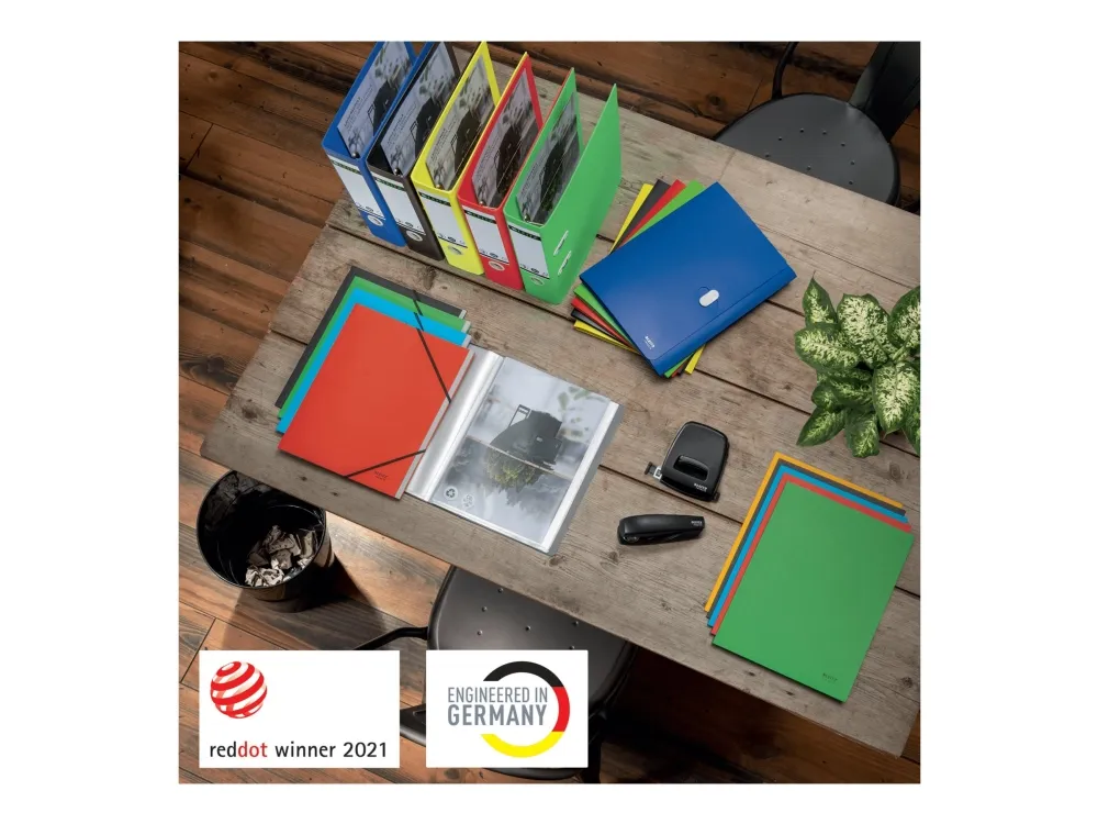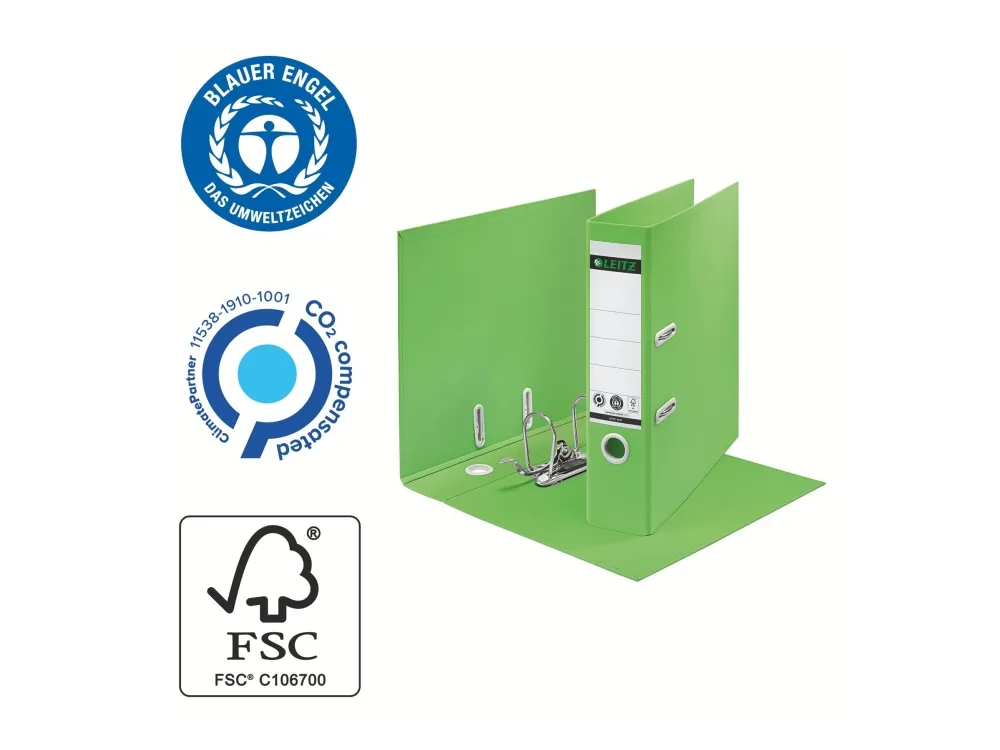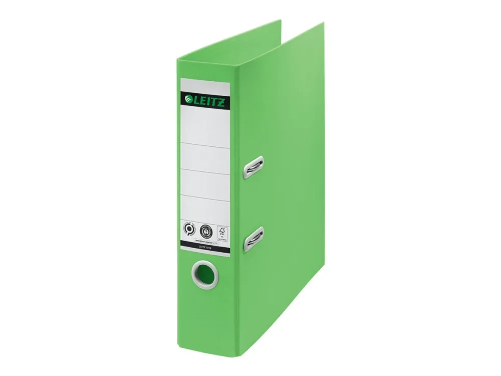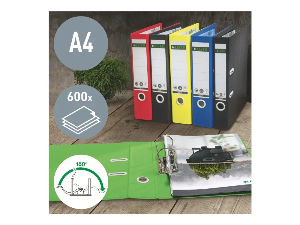The Leitz 180° lever arch file combines functionality with environmental responsibility. Made entirely from recycled materials and boasting a 100% product recyclability, it represents a responsible choice for eco-friendly office supplies. Its 180° lever arch mechanism, capable of holding up to 600 sheets, facilitates effortless filing and access to documents, making it an essential tool for efficient office management. The inclusion of Rado eyelets and a thumbhole ensures durability and ease of use, while the spine label offers a simple way to organize and quickly identify your files. Suitable for both professional and personal use, the Leitz 180° lever arch file is designed to meet the demands of any filing system, with a focus on sustainability and functionality.