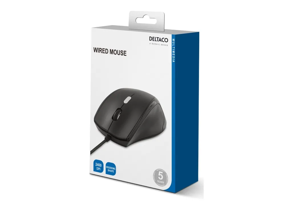DELTACO MS-774 - Mus - optisk - 3 knapper - kablet - USB - svart