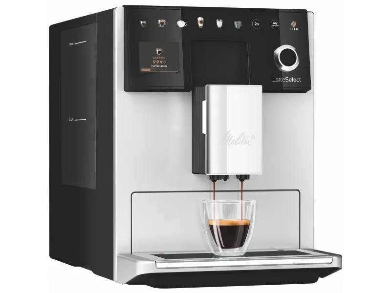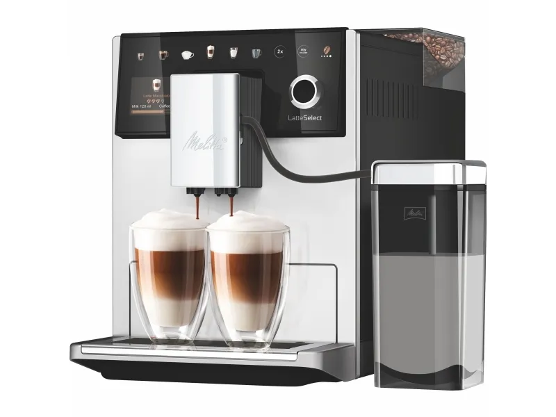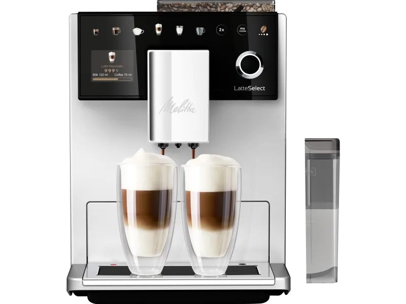 Melitta Latte Select. Product type: Espresso machine, Coffee maker type: Fully-auto, Water tank capacity: 1.8 L, Coffee input type: Coffee beans, Reservoir for brewed coffee: Cup, Built-in grinder. Display type: TFT. Power: 1400 W. Product colour: Silver