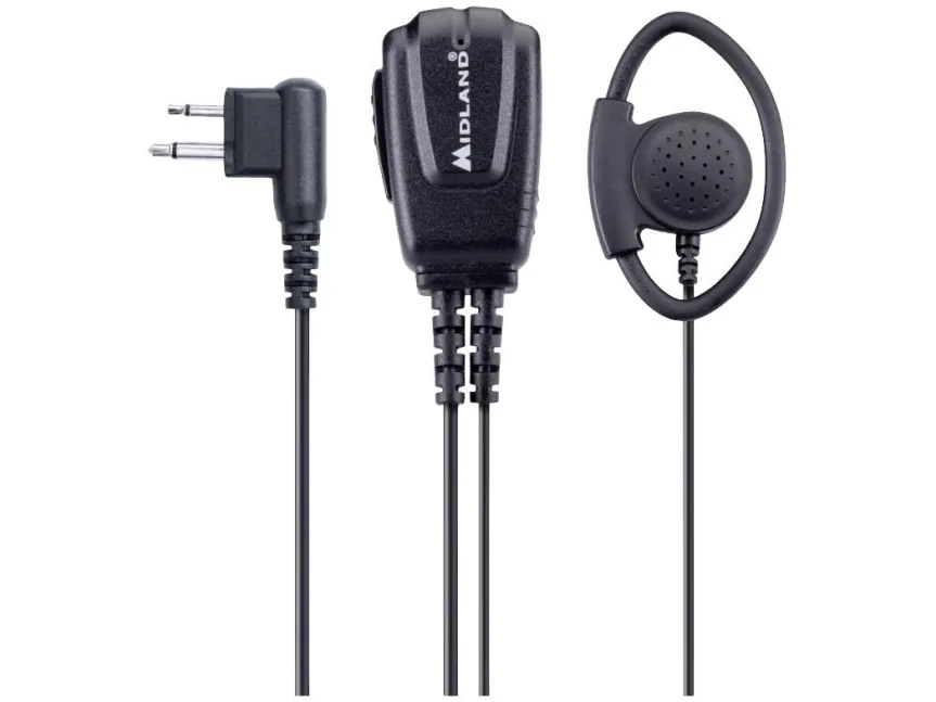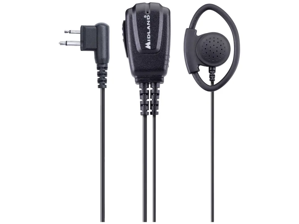 Mikrofon-/højttalerkombination med praktisk lydstyrkeregulering på headsettet samt en PTT-knap til manuel transmission og en VOX håndfri funktion til håndfri kommunikation. Øretelefonen ligger ved øret og findes uden problemer stabilt og fast med D-ringen ved øret.