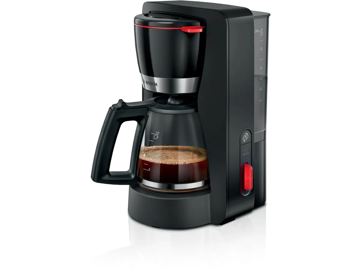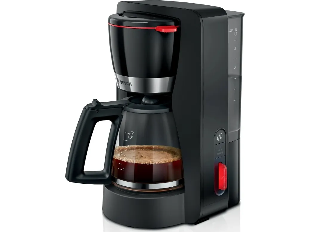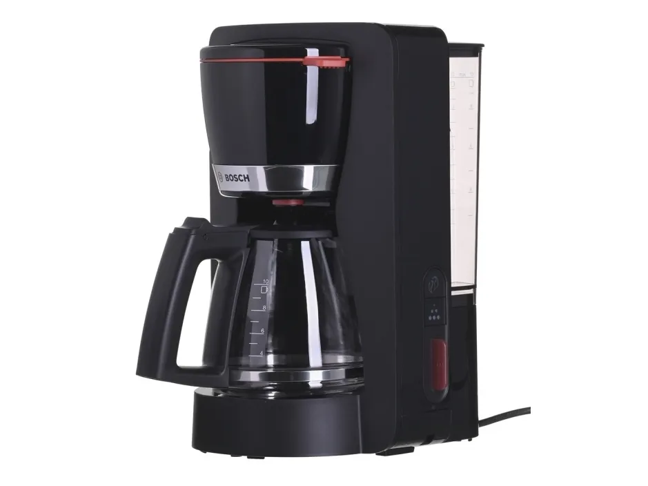 Bosch TKA4M233. Product type: Drip coffee maker, Coffee maker type: Semi-auto, Water tank capacity: 1.37 L, Coffee input type: Ground coffee, Reservoir for brewed coffee: Jug, Capacity in cups: 15 cups. Power: 1200 W. Product colour: Black