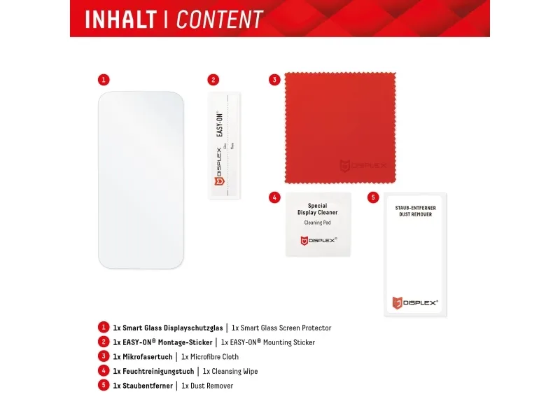 DISPLEX Smart Glass is a combination of conventional protective glass and extremely thin, flexible, virtually indestructible protective film. With a surface hardness of 9H, it offers very good protection against scratches and other damage. At the same time, with 0.25mm, it is ultra-thin, resistant, flexible or bendable and therefore almost indestructible. The DISPLEX Smart Glass is manufactured with the latest laser technology in our production facility in Straubing, Germany, and is precisely adapted to the contour of the smartphone display - Made in Germany. The unrestricted functionality, colour brilliance and case compatibility are of course guaranteed.