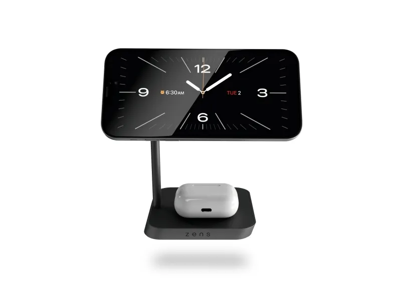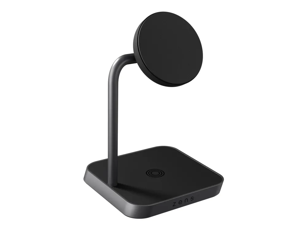 ZENS Office Charger 2 er en allsidig ladeløsning som er designet for å gi strøm til flere enheter på en effektiv måte. Stativet har støtte for trådløs lading og er laget av høykvalitets sinklegering, noe som sikrer holdbarhet samtidig som det har et elegant utseende. Laderen er kompatibel med MagSafe-teknologi, slik at den kan justeres med enheter for optimal ladeytelse.
