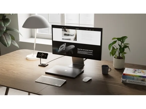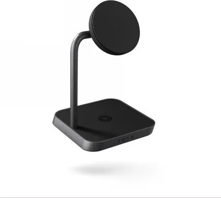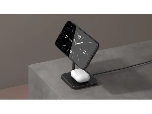 Denne trådløse ladeplaten kan levere opptil 20 W strøm, og har en standby-funksjon for forbedret energieffektivitet. Den støtter både stående og liggende retning, noe som gjør det praktisk for brukerne å se på enhetene sine mens de lader. I tillegg kan laderen gi strøm til opptil to enheter samtidig, noe som gjør det mulig å håndtere flere dingser samtidig.