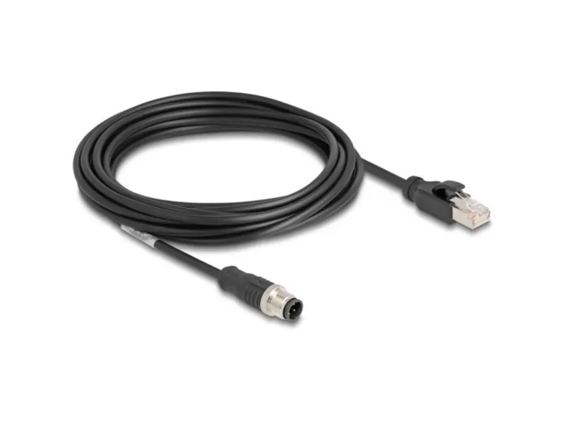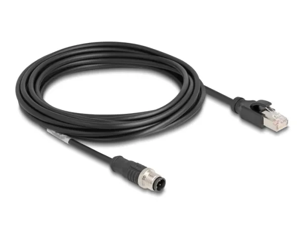 The Delock network cable offers robust connectivity solutions for a variety of applications. With S/FTP technology, it ensures effective shielding against interference, providing stable performance. The cable features a 4-pin M12-D connector on one end and an RJ-45 male connector on the other, allowing seamless integration with different devices. Designed with aluminum foil and tinned copper braid shielding, it maintains efficient signal transmission. The cable is rated for 4 A / 60 V, making it suitable for various power applications.