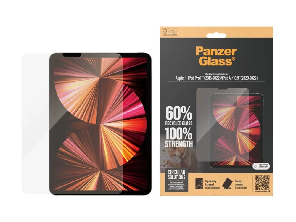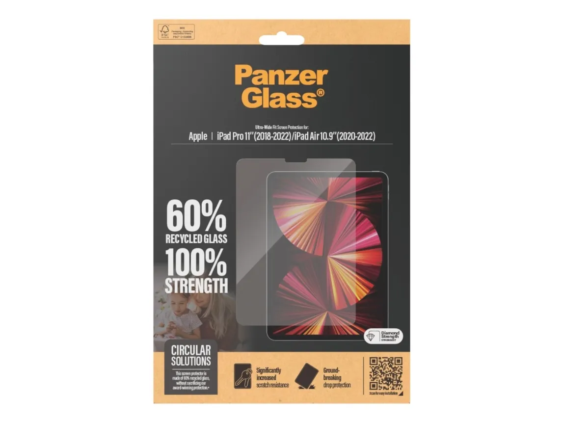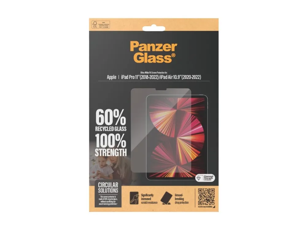 Introducing our PanzerGlass screen protector, made of 60% glass. Kids love their tabelts – dropping, banging, scratching and bumping them as they go. That is just everyday life. And that is just what this PanzerGlass screen protector is made for: protecting your tabelt from the hazards of everyday life. Accidental bumps against sharp-edged table corners or crushing falls onto stone-hard floors are no match for its scratch and shock-resistant layers. The screen protector is easy to apply and once installed, you'll never again fear the sight of your tabelt slipping from your kid's fingers and tumbling to the ground. This may never happen, but if it does, you'll regret not having clicked "add to cart". The Ultra-Wide Fit screen protector covers the entire front surface of your tablet, while still leaving room for a case. It provides a complete and crystal-clear view of your screen and comes in FSC-certified packaging that can be recycled. The PanzerGlass screen protector. Tested by kids. Approved by parents.