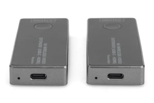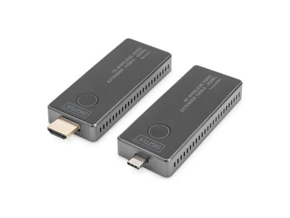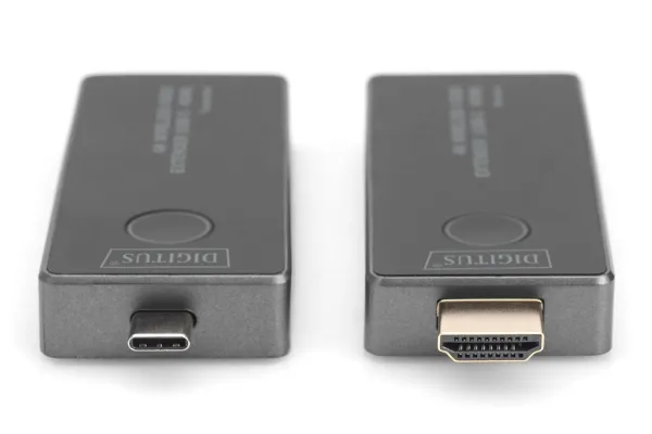 Experience cable-free audio and video transmission in razor-sharp UHD 4K/30Hz with the 4K Wireless Video Extender. The set enables easy setup without drivers or software thanks to Plug & Play. With a range of up to 30 meters in clear view, it guarantees reliable transmission. AES 128-bit encryption and the WPA2 protocol ensure secure data transmission. Compatible with HDMI 2.0, DP 1.2 and HDCP 2.2/1.3. Ideal e.g. for home cinemas, conference rooms and training facilities. Discover the freedom of wireless entertainment!Digitus 4K Wireless Video Extender, 30 m (USB-C - HDMI), 4K/30Hz. Type: AV transmitter & receiver