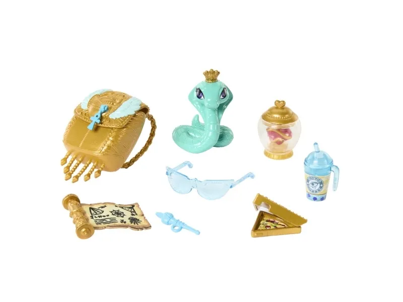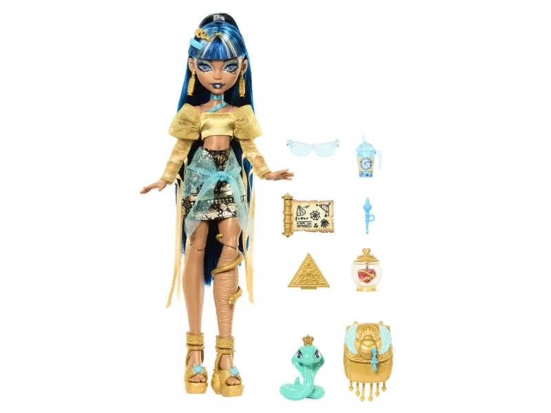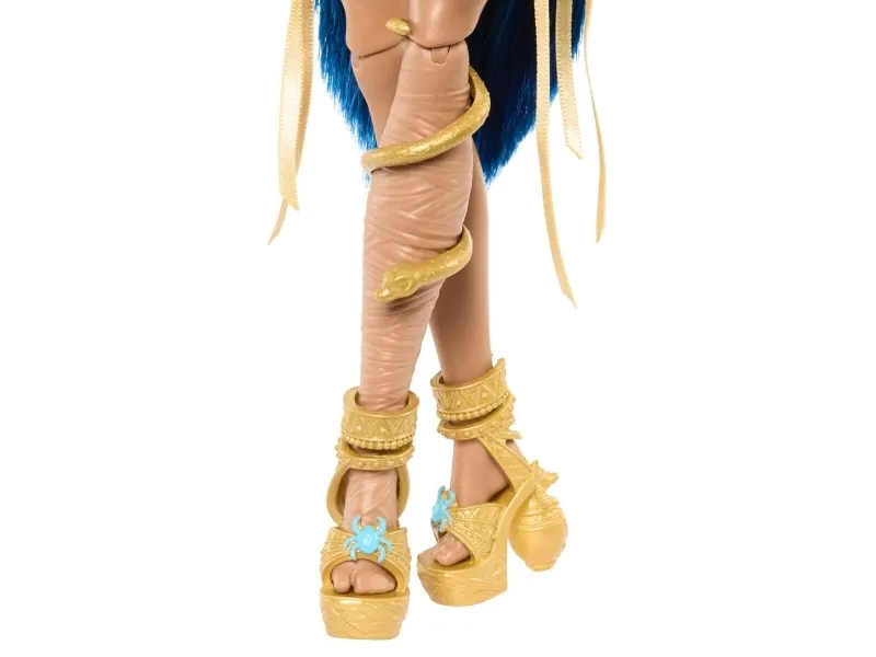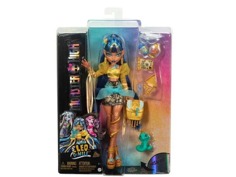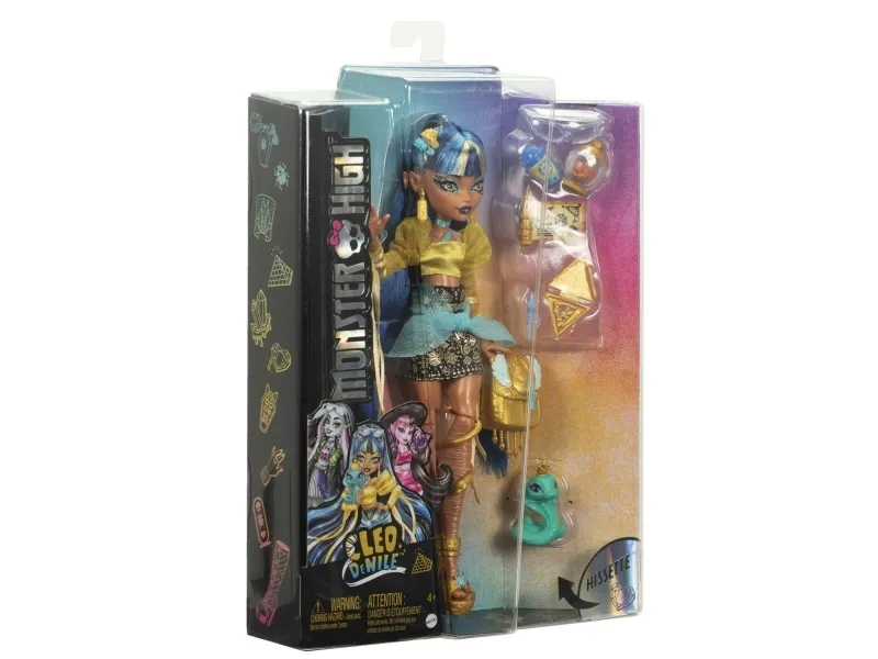 This Monster High doll makes quite a fashionable mummy! Cleo De Nile is wrapped from head-to-toe in her regally chic style. Her creeperific cobra Hissette is ready to join in on spooky adventures, too! With her poseable body and scary-chic storytelling accessories, Cleo De Nile doll is a faboolous gift for kids 4 years old and up. Fully articulated. Doll cannot stand alone. Colours and decorations may vary.Monster High Cleo De Nile Fashion Doll with Pet Hissette and Accessories. Recommended age (min): 4 yr(s). Height: 150 mm, Weight: 250 g. Material: Plastic