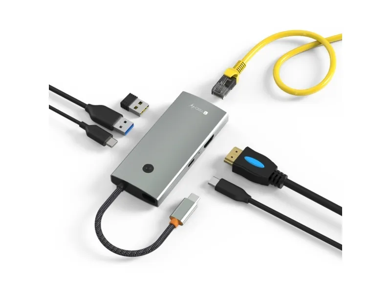 1 x audio / video - HDMI - 19 pin HDMI Type A 1 x USB-C med Power Delivery - 24 pin USB-C 2 x USB-A 3.2 - 9-pins USB-type A 1 x nettverk - 10Base-T/100Base-TX/1000Base-T - RJ-45 1 x USB-C 3.2 - 24 pin USB-C
