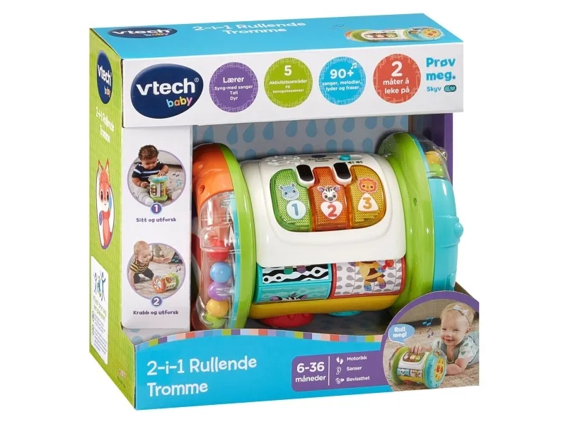 Sätt dig upp och lägg märke till fem aktivitetsområden som introducerar djur och siffror med sånger och fraser. Vrid på kugghjul, snurra på hjul och flytta nyckelpigans skjutreglage för att träna lillfingrarnas muskler. Uppmuntra barn som just lärt sig krypa med rörelseaktiverade ljud och musik som belönar varje rullning och uppmuntrar småttingar att följa efter. Inkl. 7 sånger.