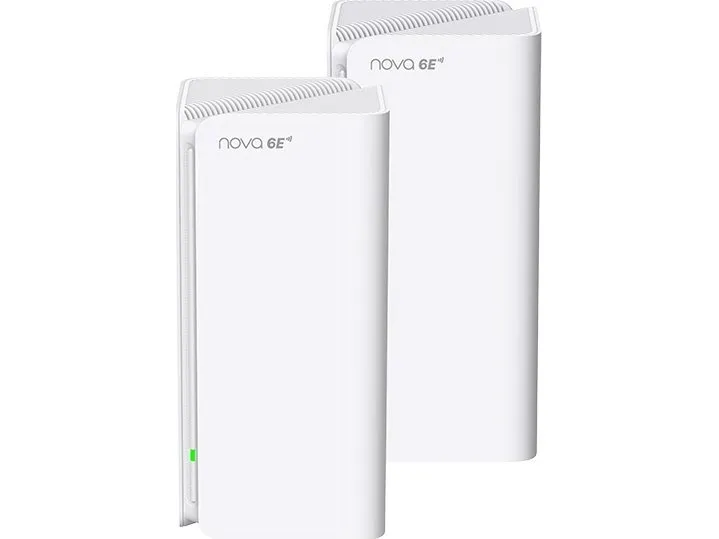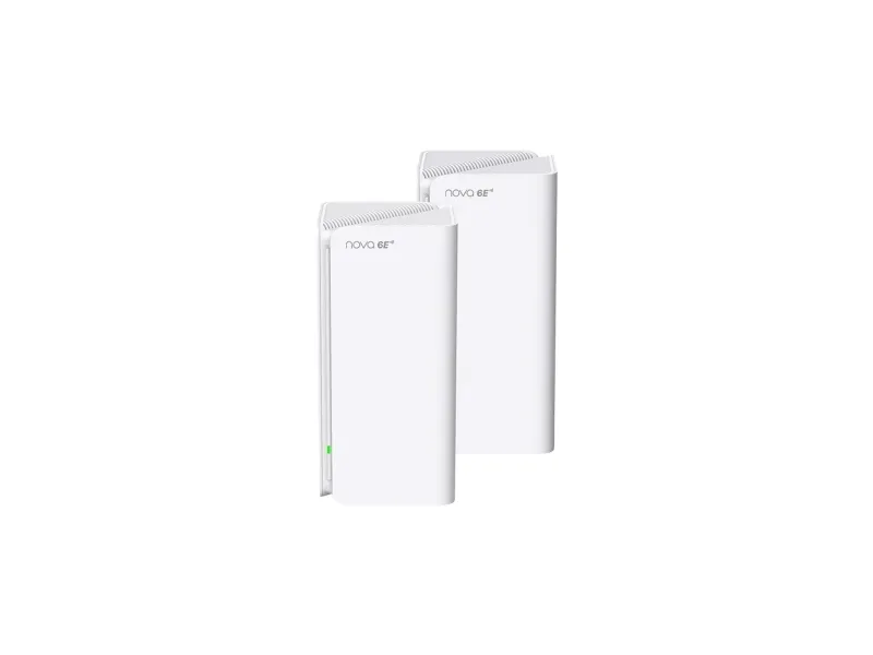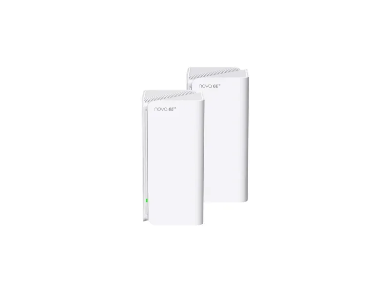 Ivory white design, simple household style. It is not only a router but also a work of art, decorate your house with the delicate case.Tenda MX21 Pro(2-pack). Product colour: White, Antenna type: Internal, Product type: Mesh system. Wi-Fi band: Tri-band (2.4 GHz / 5 GHz / 6 GHz), Top Wi-Fi standard: Wi-Fi 6 (802.11ax), WLAN data transfer rate (max): 2402 Mbit/s. Firewall security: CMP Flood Attack Defense TCP Flood Attack Defense UDP Flood Attack Defense Ignore Ping Packet From..., Parental control features: Weekly/monthly reports. AC input voltage: 100 - 240 V, AC input frequency: 50 - 60 Hz. Compliance certificates: RoHS, Federal Communications Commission (FCC)