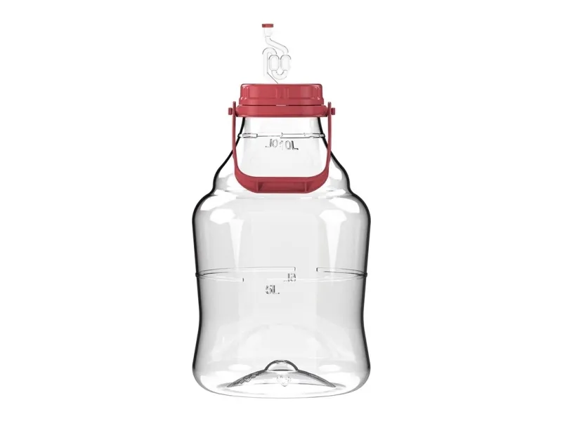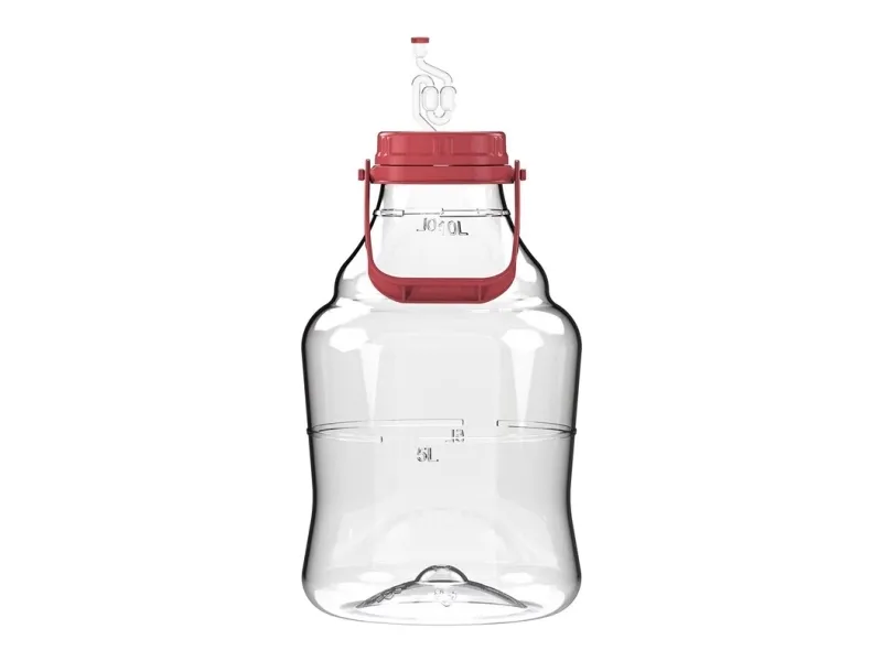 Brand- Browin. Article- 644310. Volume- 10 l. Colour- Transparent. Material- Polyethylene terephthalate (PET). With a handle- Yes. Contents- Complete set - the set includes a 10L demijohn with a handle, a tightening twist-off lid, an airlock, a plug with an airlock opening, a user manual, and recipes for homemade wine.. Number of Items- 1. Mandatory warranty- 24 mo. Warranty for legal entities- 12 mo.
