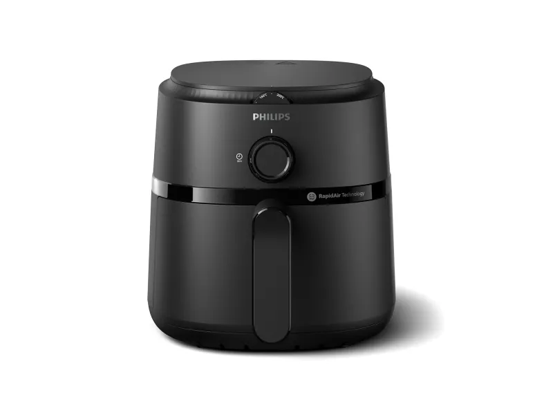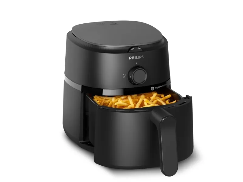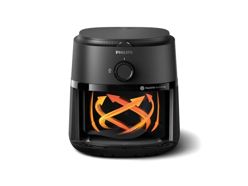 All the flavor, none of the hassle Crispy outside, tender inside. Unique RapidAir technology saves time and energy, without compromising on taste. Simply dial up the time and temperature to enjoy delicious, healthy side dishes and snacks in under 15 minutes.Philips 1000 series NA110/00. Product type: Hot air fryer, Capacity: 3.2 L, Fryer food capacity: 0.4 kg. Construction type: Single, Control type: Rotary, Appliance placement: Stand-alone. Power: 1300 W, AC input voltage: 220 - 240 V, AC input frequency: 50 - 60 Hz. Width: 257 mm, Depth: 352 mm, Height: 273 mm. Package width: 320 mm, Package depth: 320 mm, Package height: 305 mm