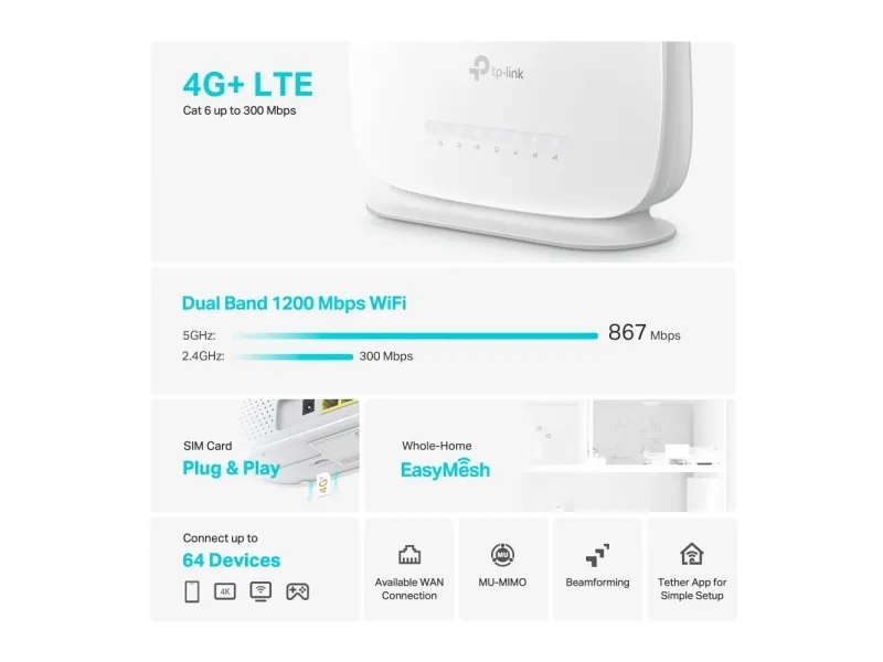 A 4G+ Router for Flexible Connections AC1200 Dual Band Wi-Fi LTE Router