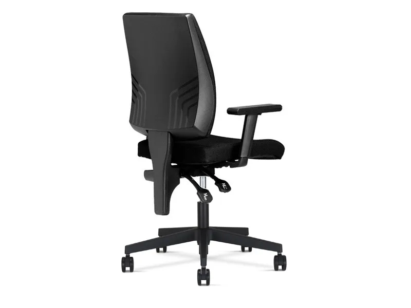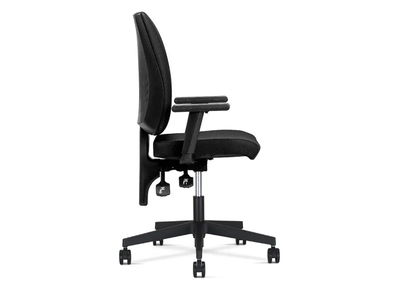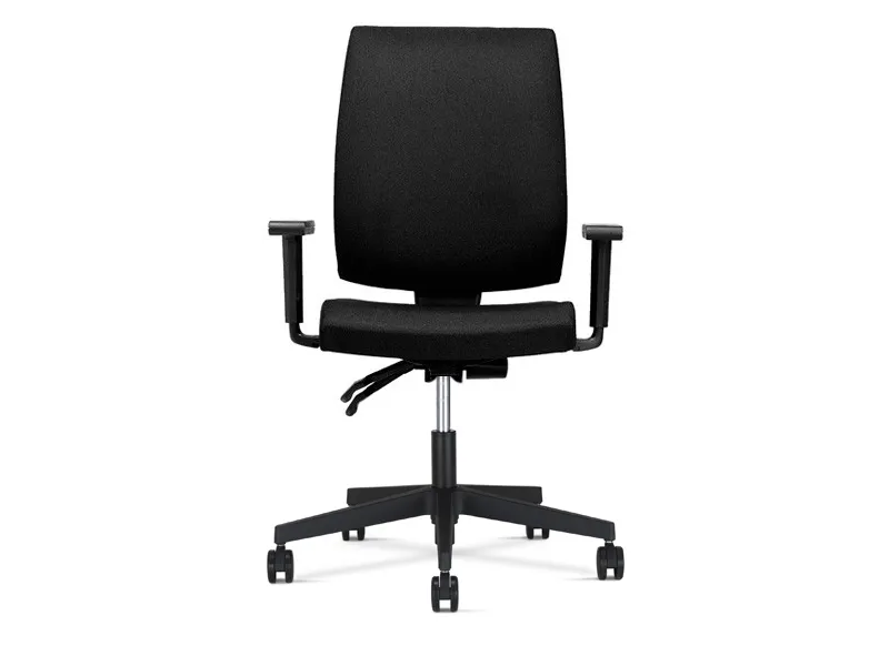 Kontorstolen Taktik er en moderne stol med dynamisk rygstøtte, bredt komfortabelt sæde og ryg - og ekstra polstring i forhold til stole i samme prisklasse. Taktik er en arbejdsstol med justerbar højde i ryggen, justerbare armlæn, hjul for bløde gulve og mekanisme med justerbar modstand i gyngen. Taktik leveres med solid, sort understel og er produceret i sort Lucia tekstil, et slidstærkt tekstil i 100 procent polyester, med følgende klassificeringer: Vægt: 260 g/m2 Slidstyrke: 50.000 Martindale Brandklasse: EN 1021-1 og 2 (cigaretter og tændstikker) / BS 7176: lav risiko / BS 476: Class 1
