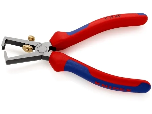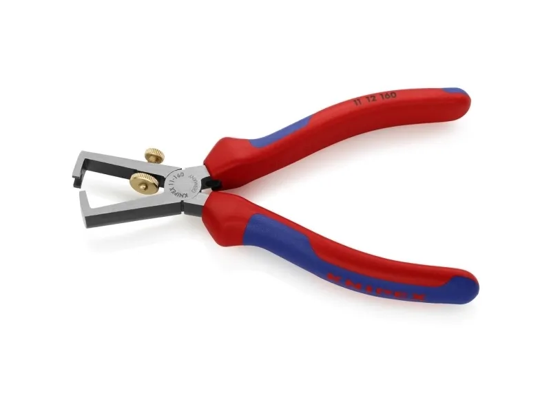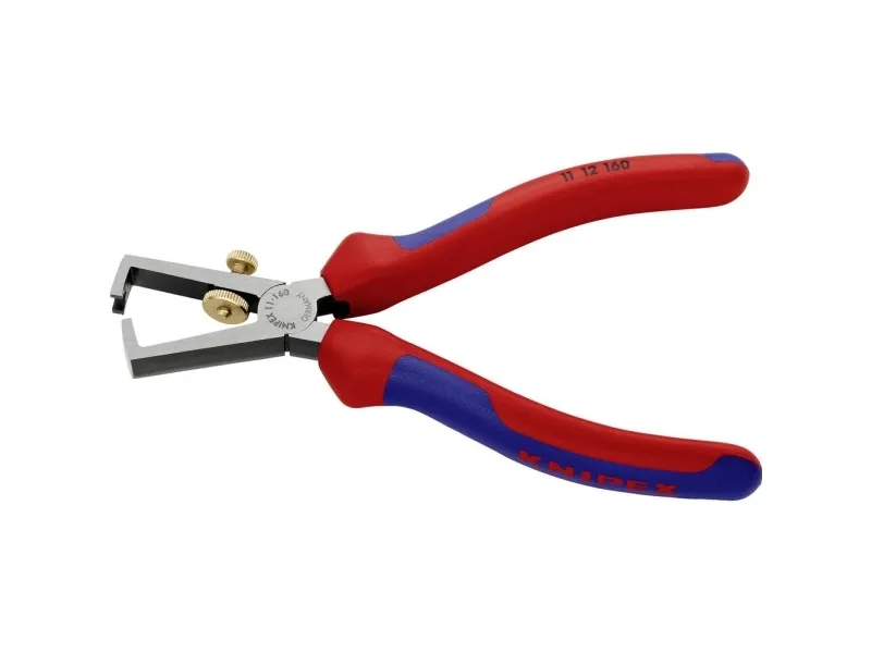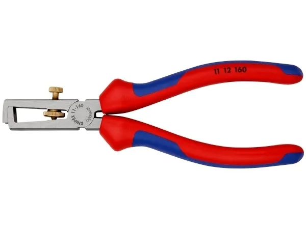 11 12 160 Afisoleringstang Til en-, fler- og fintrådede ledere med kunststof- eller gummiisolering med max. Ø 5,0 mm eller 10 mm² ledertværsnit. Let at indstille på den ønskede tråd- eller kabeldiameter pga. fingerskrue og kontramøtrik.
