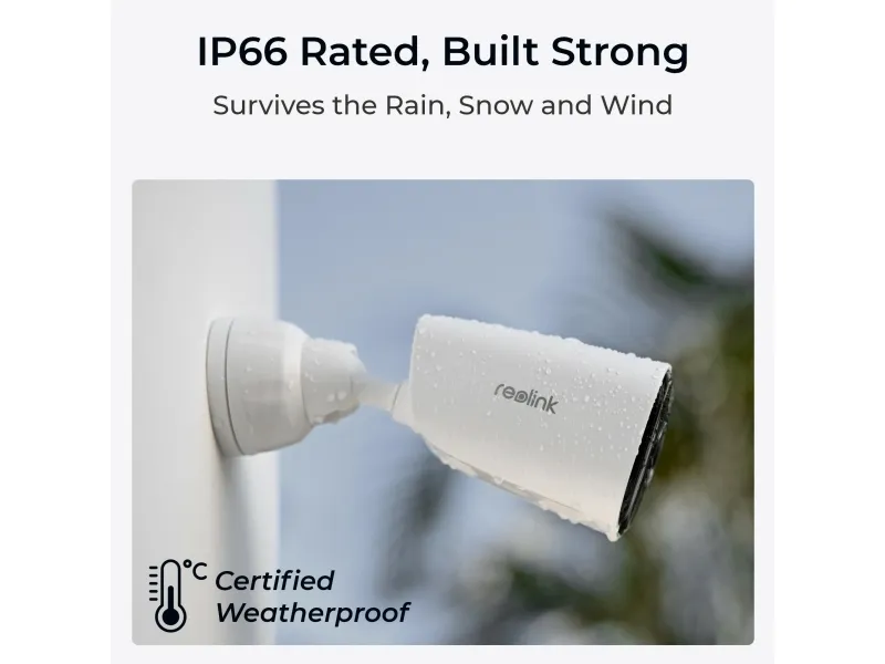 Det robuste og vejrbestandige IP66-design sørger for, at kameraet også under krævende forhold, uanset om det regner eller solskin, fungerer pålideligt både indendørs og udendørs og er egnet til temperaturer fra -10 °C til +55 °C.