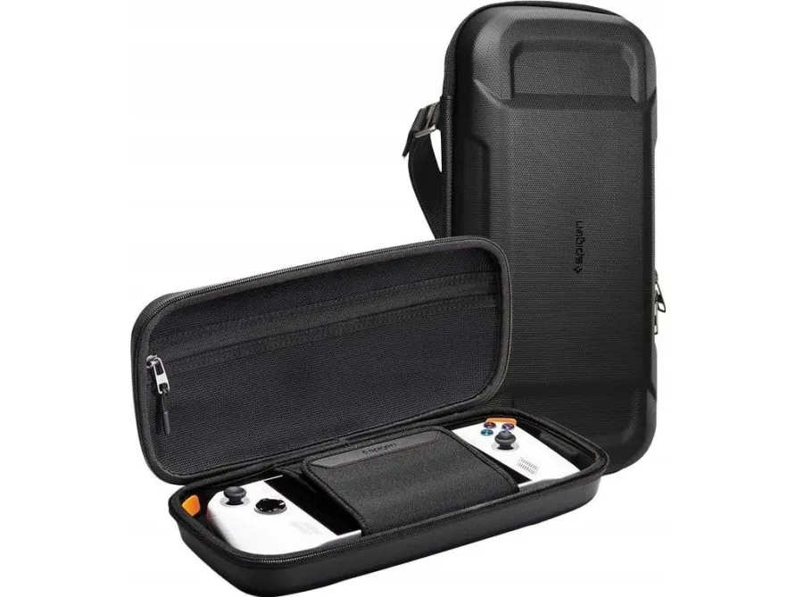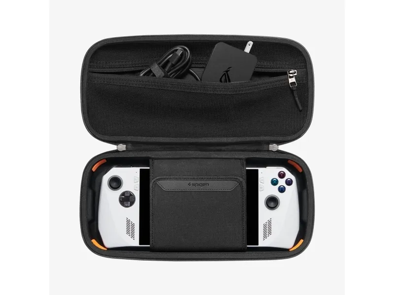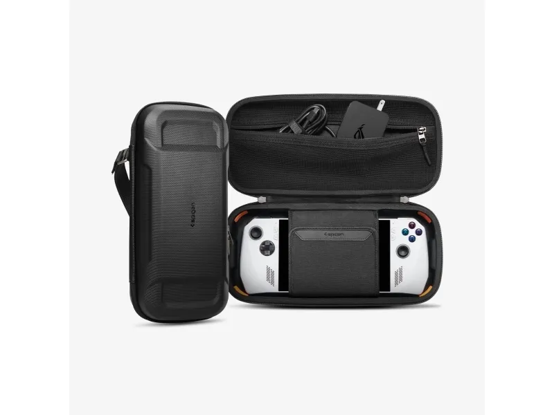Keep your ROG Ally X extra secure with protection pads that absorb shock as well as the soft-cover velcro strap with an AirTag holder embedded inside to hold your Rog Ally intact and keep track of its location.Spigen ROG Ally Case. Case type: Pouch case, Brand compatibility: ASUS, Product colour: Black. Width: 315 mm, Depth: 89.9 mm, Height: 140 mm. Package weight: 570 g. Quantity per pack: 1 pc(s)