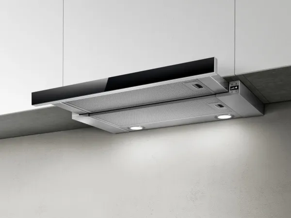Elica ELITE 26 IX/A/60/VT. Maximum extraction power: 900 m³/h, Type of extraction: Ducted, Fluid dynamic efficiency class: C. Type: Built-under, Product colour: Black, Stainless steel, Exhaust connection diameter: 15 cm. Grease filter type: Aluminium. Bulb power: 2.5 W, Number of bulbs: 2 bulb(s), Bulb type: LED. Annual energy consumption: 76 kWh, Energy efficiency scale: A+++ to D, Motor power: 180 W
