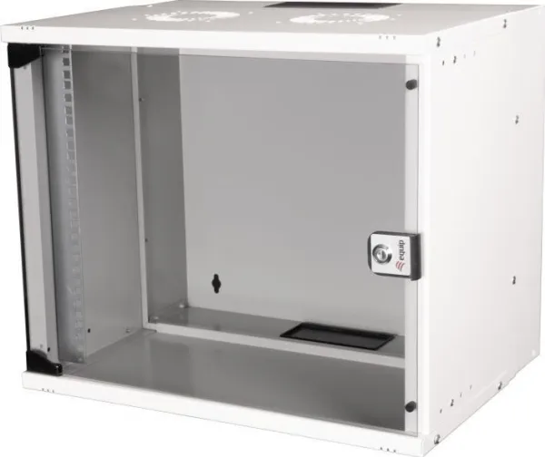 Introducing the Equip Eco Mount Wall Mount Cabinets—designed for seamless integration and efficient management of network components, emphasizing sophisticated cable organization. Constructed from robust 1.5 mm thick steel sheets, these cabinets are paragons of durability and security, ensuring the protection of your valuable equipment. Choose from elegant shades of grey (RAL 7035) and black (RAL 9005) to enhance both functionality and aesthetics. Available in 10“ or 19“ variants, the Equip Eco Mount series offers a smooth experience exclusively for wall-mounted configurations. The door design allows easy reorientation from right to left to suit your spatial requirements. To maintain an optimal operational environment, the cabinets are equipped with integrated ventilation slots at the top.Our design prioritizes effective cable management. The top and bottom each have a cable entry covered with a removable plastic cover for easy cable routing and protection. We offer a broad range of accessories, like cable management tools and shelves, to meet diverse operational needs. The Equip Eco Mount Wall Mount Cabinets allow you to enhance your IT infrastructure confidently and efficiently. Choose our cabinets for a smarter, more organized, and reliable network solution. Opt for either the 10“ or 19“ model and elevate your IT environment's performance today. Please note, these cabinets are not pre-assembled. Assembly is straightforward, and we provide an instructional video to guide you through the process.Equip Eco Mount 19' Cabinet, 09U, 540X400MM, RAL7035 Grey. Type: Wall mounted rack, Rack capacity: 9U, Key lock. Weight: 10.3 kg. Product colour: Light grey