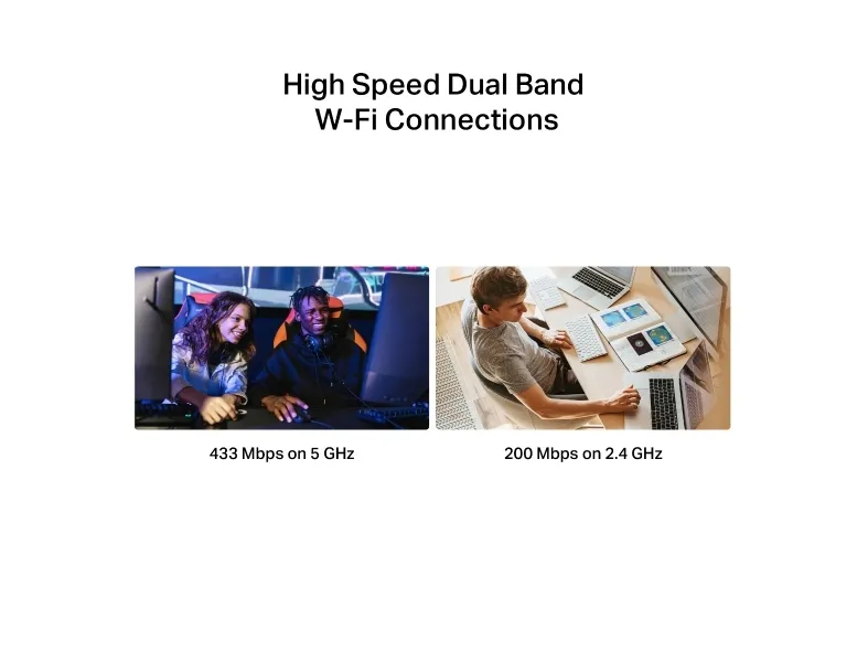 High Speed Dual Band Wi-Fi Connections The MA20N combining 200 Mbps on 2.4 GHz (perfect for surfing and emailing) and 433 Mbps on 5 GHz (ideal for HD streaming and gaming), so that you have the flexibility to allocate your devices to dedicated networks to do more at the same time.