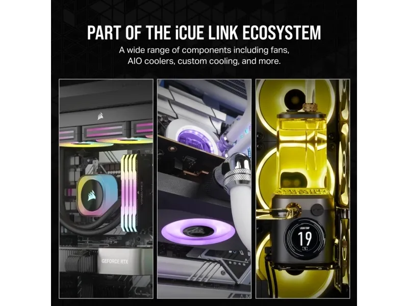 The CORSAIR iCUE Link RX140 case fan is a cooling solution designed for desktop computers and servers. It features a 140 mm fan diameter and a magnetic bearing, ensuring both effective cooling and quiet operation. With CORSAIR AirGuide technology, this fan directs airflow precisely where your system needs it the most, enhancing cooling efficiency and system performance. The inclusion of Pulse-width modulation (PWM) support allows for detailed control over fan speeds, enabling users to balance cooling power with noise level, while the Zero RPM fan mode ensures silent operation when cooling demand is low. Certified with multiple compliance standards, including RoHS and UKCA, and equipped with a mounting kit, the CORSAIR iCUE Link RX140 is ready to elevate your system's cooling and performance.