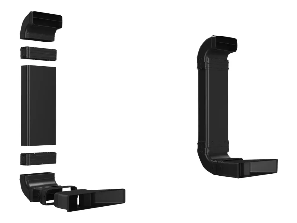 Diffusør Flat channel duct 3 x duct pipe connector 2 x duct elbow