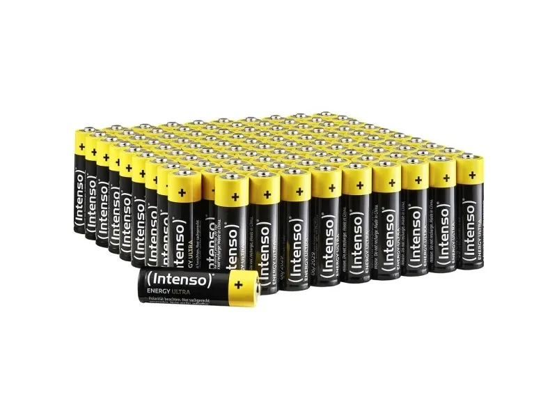 ENERGY Ultra AA LR6 pakke med 100 stk. Fra legetøj til ure og køkkenvægte, til fjernbetjening og computertilbehør: ENERGY Ultra-batterier fra Intenso garanterer den højeste ydeevne og lang levetid, så du kan garantere den bedst mulige brug af dine programmer. Uanset om der er brug for lidt strøm i lang tid eller du har brug for en høj ydelse på kort sigt, sikrer Intenso Energy Ultra-batterierne optimal udnyttelse af ethvert energiforbrug.