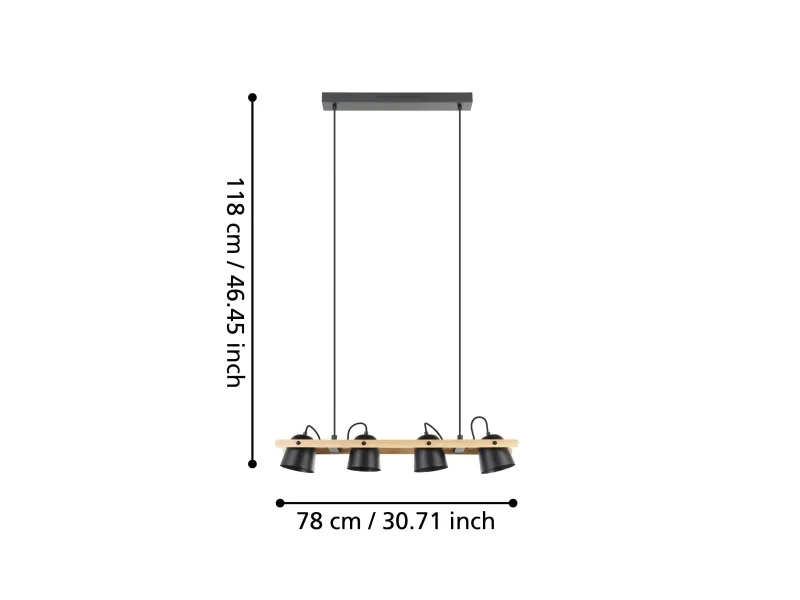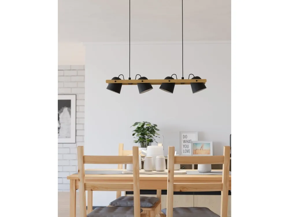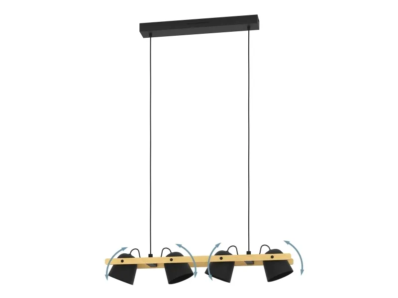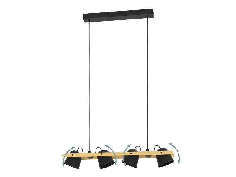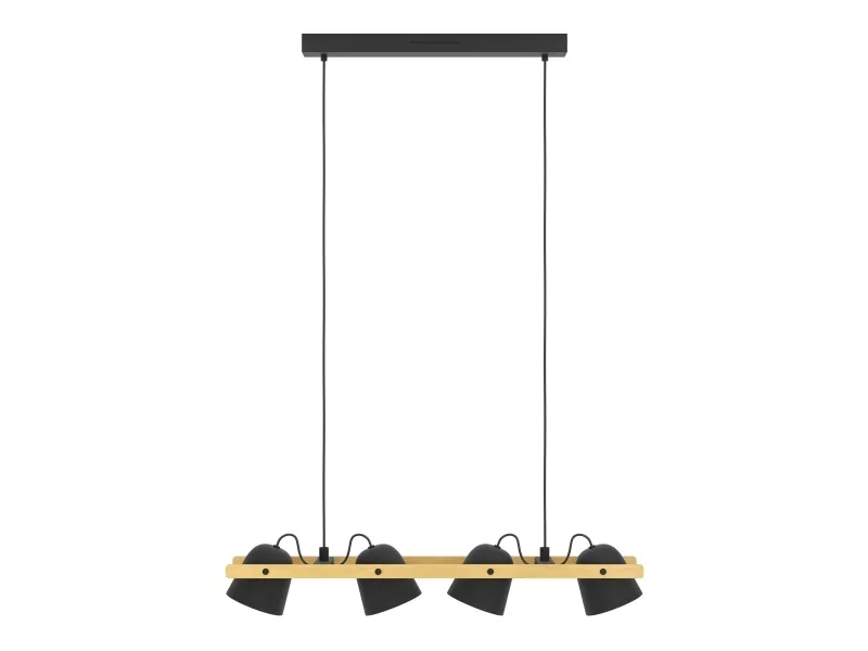 EGLO CONNECT-Z HORNWOOD-Z langbordspendel i sort og FSC-godkendt træ, 4L. Højde 110 cm, længde 78 cm, bredde 14 cm. LED, 4 x 3,7 watt, 2000 lumen, 2700-6500 kelvin, RGB + Tunable white. Lampen kan dæmpes og styres med fjernbetjening (medfølger ikke), via AwoX Home Control app (gratis), eller ved stemmestyring. Zigbee er kompatibel med Amazon Alexa og Google Assistent. IP20. Dette produkt indeholder lyskilder med energieffektivitetsklasse: D.