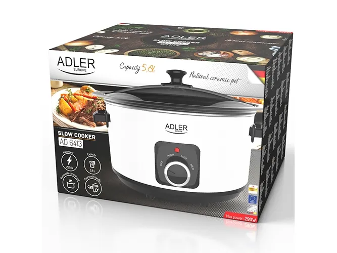 Virtuvinis kombainas Adler | Lėta viryklė | AD 6413w | 290 W | 5,8 L | Programų skaičius 3 | Baltas