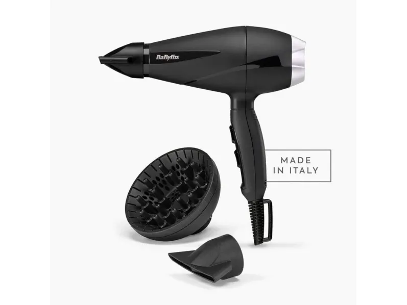 BaByliss 6710DE. Motor type: AC, Air speed: 29.16 m/s. Product colour: Black, Cord length: 2.8 m, Country of origin: Italy. Power: 2100 W. Quantity per pack: 1 pc(s), Package type: Box