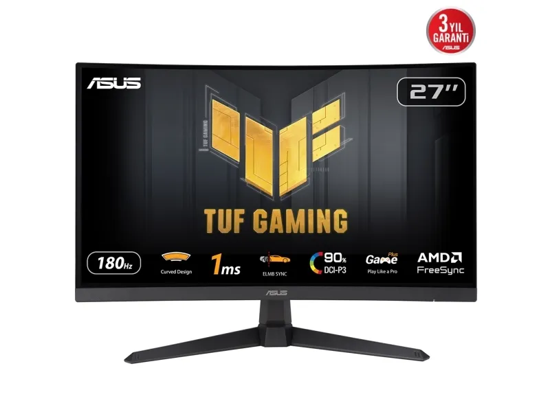 The ASUS TUF Gaming VG27VQ3B monitor is designed for enthusiasts seeking a blend of performance and comfort. With its 27-inch curved display, it offers an immersive gaming experience that brings every world to life in stunning Full HD. The monitor's AMD FreeSync technology, combined with a high 180 Hz refresh rate, ensures that gameplay is smooth and free from tearing, even in the most action-packed scenes. Fast-moving visuals are handled with ease, thanks to a 1 ms response time and ASUS's proprietary blur reduction technologies, making every moment on screen crisp and clear. Beyond performance, this monitor is built for marathon gaming sessions. It features eye care technologies like Flicker-Free and Low Blue Light filters to reduce eye strain, alongside ergonomic design choices that allow for extensive display position adjustments. Whether you're gaming, streaming, or multitasking, the ASUS TUF Gaming VG27VQ3B monitor is designed to deliver an exceptional experience.