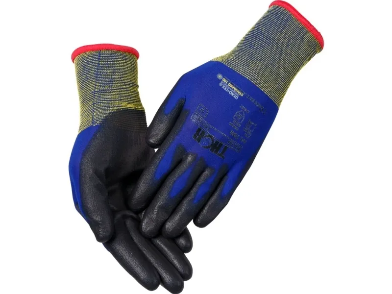 Fingerdyppet PU handske, THOR Extra Light, 8, blå, PA/polyester