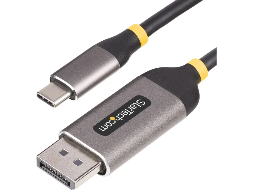 Elevate your viewing experience with the StarTech.com 10ft (3m) USB-C to DisplayPort Adapter Cable, capable of delivering 8K 60Hz resolution for breathtaking clarity and detail. This adapter cable is designed to connect your USB-C enabled device to a DisplayPort monitor, projector, or display, supporting both extend and mirror modes for versatile viewing options. With features like HDR and HDR10 support, a 32.4 Gbps data rate, and Display Stream Compression (DSC), it ensures a seamless, high-quality audiovisual experience. The cable is built to last, with EMI protection, an aluminum connector housing, and a durable Thermoplastic elastomer (TPE) jacket. It's compliant with standards, including USB4, Thunderbolt 3, Thunderbolt 4, and DisplayPort 1.4, ensuring compatibility with a wide range of devices. Whether for professional use, content creation, or entertainment, this adapter cable is a perfect solution for anyone looking to maximize their display's potential.