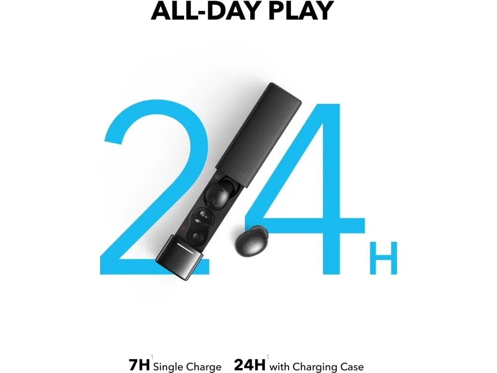 Vedvarende avspilling (ANC OFF): inntil 7 timer Vedvarende avspilling (ANC OFF / med inkludert ladeveske): inntil 24 timer Vedvarende avspilling (med 10 min lading): inntil 2 timer Vedvarende avspilling (ANC PÅ): inntil 5 timer Vedvarende avspilling (ANC PÅ / med inkludert ladeetui): inntil 18 timer