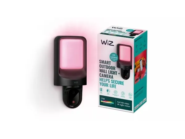 Discover the WiZ wall lamp by Signify, a versatile and intelligent lighting solution designed for your garden. This innovative lamp illuminates your outdoor space with adjustable multicolor and warm to cool white light, and enhances home security with its built-in 1080p camera, microphone, and speaker. The adjustable spot head and motion detector ensure that your garden is well-lit and secure. Designed for durability and outdoor use, the lamp is made from aluminum alloy and meets IP44 and UL 746C standards, making it weatherproof and resistant to the elements. Its energy-efficient LED technology provides a luminous power of 1250 lumens while consuming only 10.5 W, ensuring long-lasting, cost-effective operation. Seamlessly integrate this lamp into your smart home ecosystem. With Wi-Fi connectivity and compatibility with Alexa, Google Assistant, and Siri, you can control your lighting preferences with simple voice commands. Whether you're looking to create the perfect ambiance for an evening outdoors or enhance the security around your home, the WiZ wall lamp by Signify is a smart choice for modern outdoor lighting.