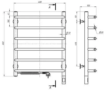 Elektrisk håndkletørker Navin Simfonia 480*600 Sensor med timer venstre 10-009133-4860