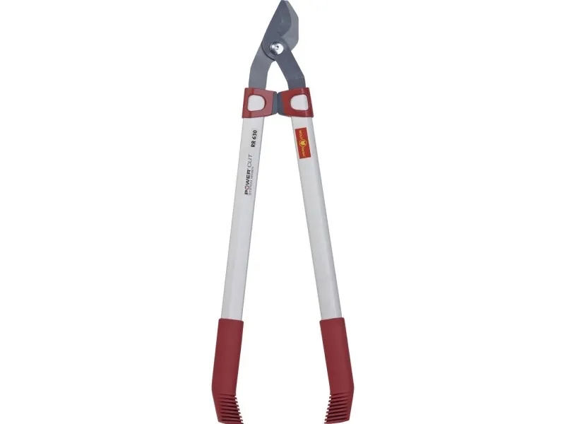 Bypass-grenskærer Power Cut RR 630 Enkel vægtstangsudveksling · ergonomisk greb · antiklæbende klinger · fladforskruede led · støddæmpende gummibuffer. Saksen med en længde på 63 cm giver en optimal overførsel af den anvendte energi i kraft. Grene med en diameter på op til 35 mm kan let skæres over. For at undgå skader på træringene, som er en indfaldsport for bakterier og skadedyr, er alle led skruet fladt. Den toskærede bypass-saks garanterer desuden altid præcise og rene snit til hurtig sårheling. Det ergonomiske grebdesign, den støddæmpende gummibuffer og den enkle vægtstangsudveksling sørger for et særligt ledskånende og kraftbesparende arbejde. Alle sliddele på dette apparat kan nemt rengøres og udskiftes uden problemer for en maksimal levetid