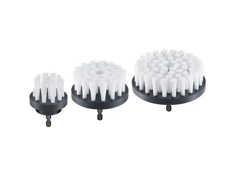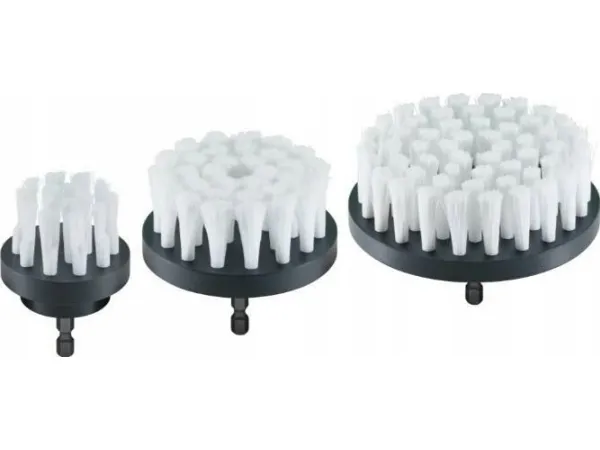 Tre praktiske børster av høy kvalitet (Ø 50, 75, 100 mm) for rengjøring av ømfintlige stoffseter og plastoverflater, produsert i Tyskland. Maksimal overflatebeskyttelse takket være ekstra myk rengjøringsbust som er motstandsdyktig mot syrer og baser. Børsten er laget av et knekkfritt materiale som beholder formen. Med sekskantet holder som forhindrer at børstene sklir i chucken. Kan enkelt klikkes inn i den lille poleringsmaskinen PXE 80, som enkelt kan nå flere steder under en bilrengjøring.