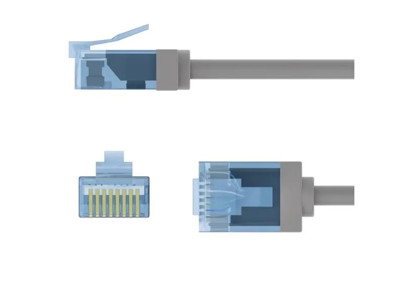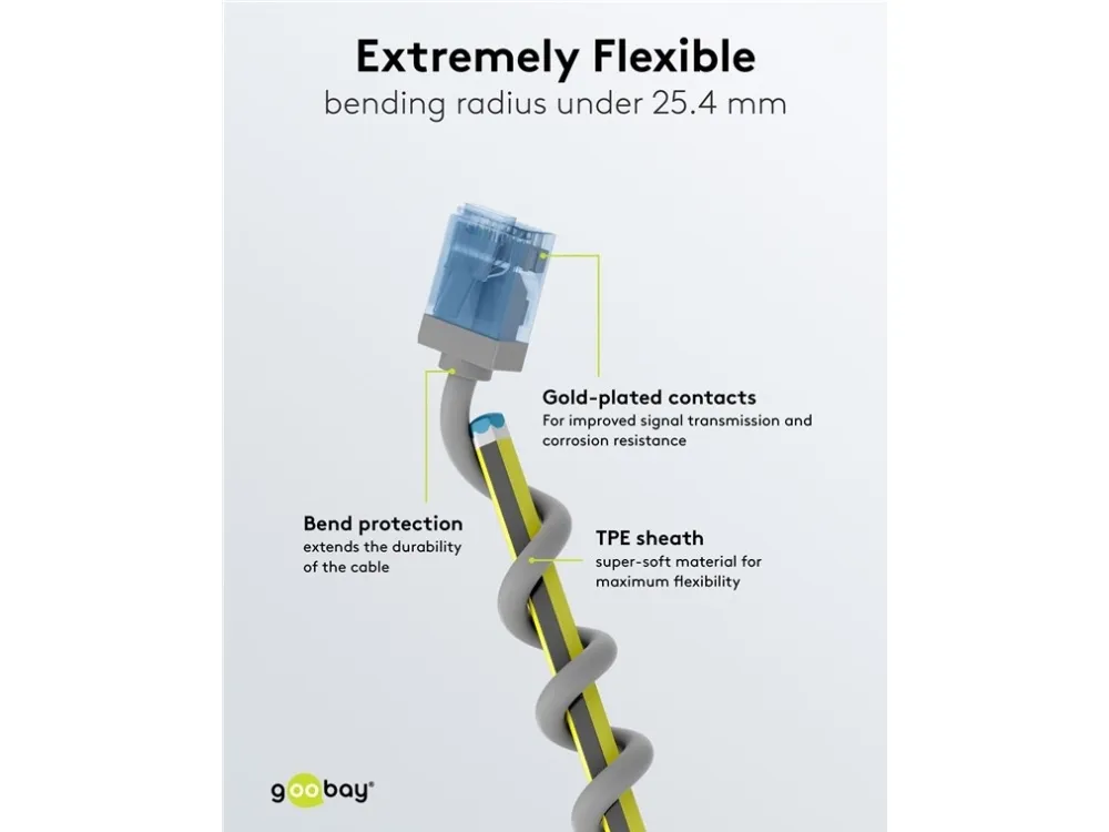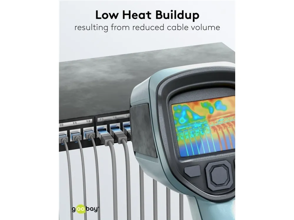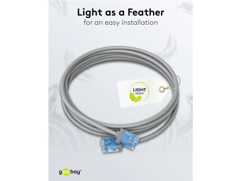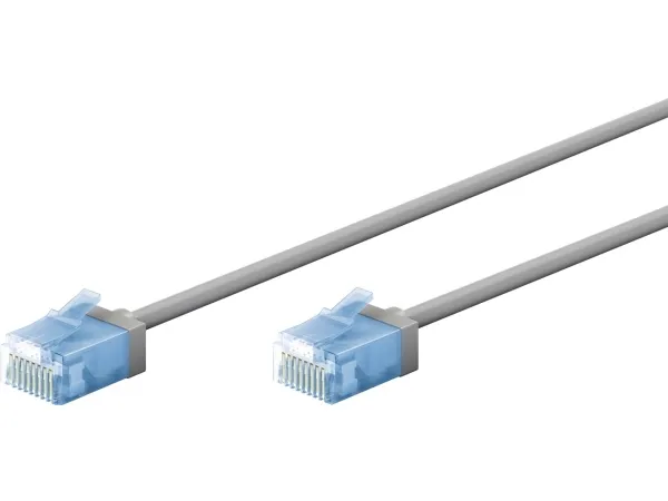 ekstrakorte stik, ren kobberleder (CU), LSZH, TPE-kappe, AWG 32 Kabellængde Supertyndt LAN-kabel med ekstrakorte RJ45-stik (15.3mm) for mindre kabelvolumen i serverskabet eller patchpanelet og dermed optimeret luftcirkulation Sikkert og fleksibelt: Uskærmet og med en røgsvag, halogenfri TPE-kappe for en særlig lille bøjningsradius og høj fleksibilitet Takket være AWG 32 og en ydre diameter på 2,8 mm er kablet ultratyndt, men lige så kraftigt som et standard CAT-kabel Som CAT 6A netværkskabel er det perfekt til hurtige forbindelser som 10 Gigabit Ethernet 10GBASE-T, 100BASE-TX, 1000BASE-T og 10/100/1000/10000 Mbit/s RJ45-kablet er egnet til Power over Ethernet (PoE) Kobberleder (CU) af høj kvalitet og guldbelagte stikforbindelser sikrer lav transmissionsmodstand og forhindrer korrosion Den effektive, kompakte knækbeskyttelse er stærk mod kabelbrud og sikrer en lang levetid for Ethernet-kablet