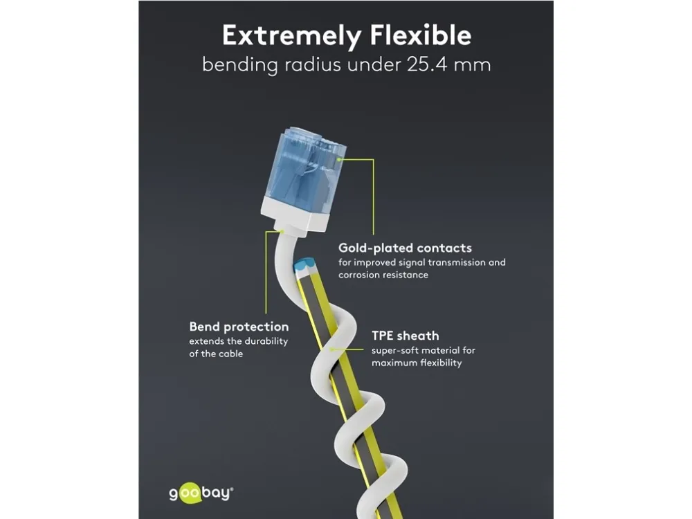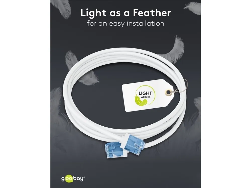 Takket være AWG 32 og en ydre diameter på 2,8 mm er kablet ultratyndt, men lige så kraftigt som et standard CAT-kabel