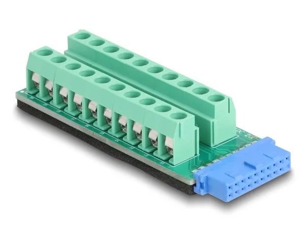 The Delock USB adapter offers a versatile connection option with its 19-pin USB header on one end and a 20 pin terminal block on the other. This configuration allows for integration with various devices, making it ideal for expanding connectivity in different applications. Equipped with a 5 Gbps data rate, this cable ensures fast data transfers, catering to the needs of modern technology. The anti-slip pad enhances stability during use, preventing accidental disconnections, while the 5 mm pitch provides flexibility in installation.