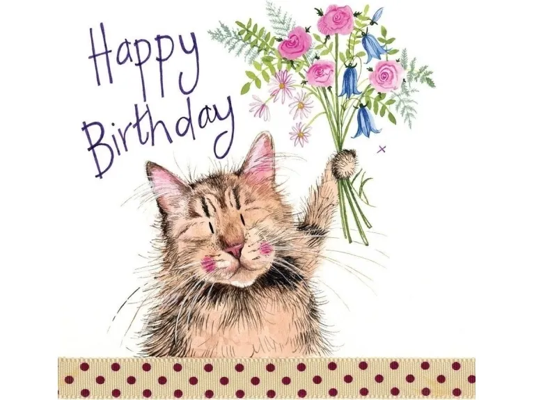 Bursdagskort S162 Katt med bukett