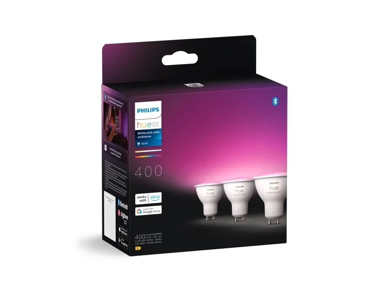Philips Hue White and Color Ambiance - LED-pære for søkelys - GU10 - 4.2 W - klasse E - flerfarge / varm til kjølig hvitt lys - 2000-6500 K (en pakke 3)